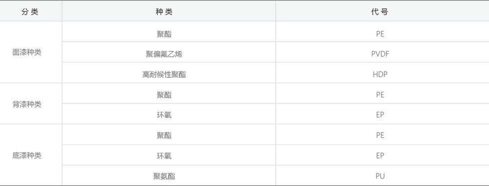 建筑類彩板涂料種類及代號(hào)
